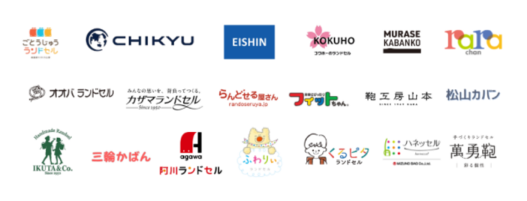 協和、水野鞄、ハシモト、後藤重、カザマ、三輪かばん、CHIKYU、羅羅屋、EISHIN、村瀬鞄行、マツモト、三栄鞄、生田、大峽製鞄、松山カバン、鞄工房山本、阿川ランドセル、コクホー